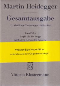 Heidegger, Martin: Logik als die Frage nach dem Wesen der Sprache. [Vollständige Neuedition, erstmals nach dem Originalmanuskript]. Frankfurt/Main: Vittorio Klostermann 2020. 8°. IX, 189 S., Leinen (sehr gut erhalten) (=Gesamtausgabe , Band 38A; 2. Abteilung, Vorlesungen 1919-1944)