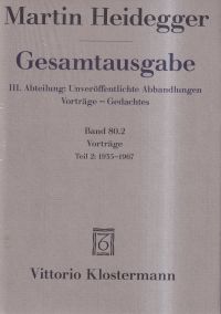 Heidegger, Martin: Vorträge. Teil 2: 1935 bis 1967. Frankfurt/Main: Vittorio Klostermann 2020. 8°. VII Seiten, Seite 566-1411, Leinen (sehr gut erhalten) (=Gesamtausgabe, Band 80,2; 3. Abteilung, Unveröffentlichte Abhandlungen – Vorträge – Gedachtes)