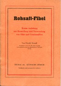 Strauss, Friedel: Rohsaft-Fibel. Kurze Anleitung zur Herstellung und Verwendung von Obst- und Gemüsesäften. Küsnacht: Techag o. J. 8°. 31 S., geheftet (Papier leicht gebräunt)