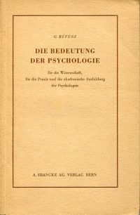 Révész, Géza: Die Bedeutung der Psychologie für die Wissenschaft, für die Praxis und die akademische Ausbildung der Psychologen. Bern: Francke 1947. 8°. 87 S., broschiert (Einband angebräunt und wenig abgegriffen; sonst gut erhalten)