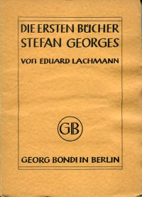 ![]() Lachmann, Die ersten Bücher Stefan Georges. (Umschlag) |