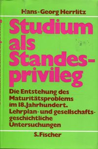 Herrlitz, Hans-Georg: Studium als Standesprivileg. Die Entstehung des Maturitätsproblems im 18. Jahrhundert. Lehrplan- und gesellschaftsgeschichtliche Untersuchungen. Frankfurt/Main: Fischer 1973. 8°. 171 S. Leinen (Papier leicht gebräunt; Schutzumschlag wenig Gebrauchsspuren; gut erhalten)