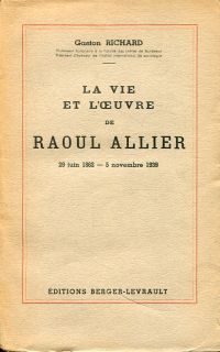 Richard, Gaston: La vie et l’oeuvre de Raoul Allier (29 juin 1862 – 5 novembre 1939). Avec un portrait. Paris: Berger-Levrault 1948. Gr.-8°. 330 S., Titelbild, broschiert (angebräunt; Kapital oben und unten leicht bestossen; altersgemäss gut erhalten)