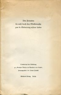 ![]() Fränkel, Den Freunden, die mich durch ihre Glückwünsche zum 80. Geburtstag erfre (Umschlag) |