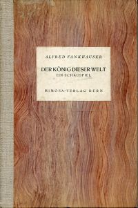 Fankhauser, Alfred: Der König dieser Welt. Schauspiel. Bern: Mimosa 1925. Gr.-8°. 108 S., Halbleinen (leicht stockfleckig; altersgemäss gut erhalten)