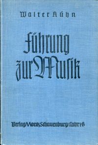 Kühn, Walter: Führung zur Musik. Voraussetzungen und Grundlagen einer einheitlichen völkischen Musikerziehung. Lahr/Baden: Moritz Schauenburg 1939. 8°. 368 S. Leinen (Einband leicht fleckig und abgeblasst; Papier leicht gebräunt; altersgemäss gut erhalten) Text in Fraktur.
