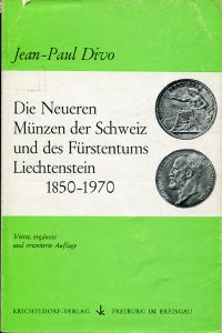 Divo, Jean-Paul: Die neueren Münzen der Schweiz und des Fürstentums Liechtenstein, 1850-1970. 4. ergänzte und verbesserte Aufl. Freiburg i. Br.: Kricheldorf 1971. 8°. 126 S., viele Münzenabbildungen. Engl. broschiert (Schutzumschlag leicht lädiert und berieben; sonst gut erhalten)