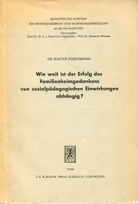 Forstmann, Walter: Wie weit ist der Erfolg des Familienheimgedankens von sozialpädagogischen Einwirkungen abhängig? Tübingen: Mohr (Siebeck) 1958. Gr.-8° 69 S. broschiert (=Schriften des Instituts für Wohnungsrecht und Wohnungswirtschaft an der Universität Köln)