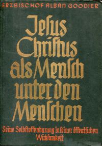 Goodier, Alban: Jesus Christus als Mensch unter den Menschen. Seine Selbstoffenbarung in seiner öffentlichen Wirksamkeit. Innsbruck: Tyrolia 1935. Gr.-8°. 445 S., Leinen (Schutzumschlag mit leichten Randläsuren; Bibliotheksexemplar; Stempel auf Vorsatz, Vortitel und Titelblatt; altersgemäss gut erhalten)