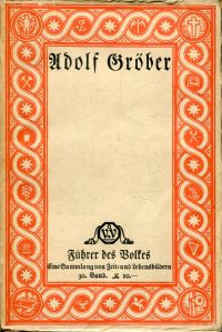 Cardauns, Hermann: Adolf Gröber. Unter Benutzung d. Nachlasses. M. Gladbach: Volksvereins-Verlag 1921. 8°. 171 S., 1 Titelbild, broschiert (Seiten teilweise nicht beschnitten; Umschlag mit leichten Randläsuren; tweilse stockfleckig; sonst altersgemäss gut erhalten) (=Führer des Volkes ; Bd. 30)