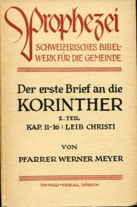 Meyer, Werner: Der erste Korintherbrief, 2. Teil: Kapitel 11-16. Leib Christi. Zürich: Zwingli 1947. Kl.-8°. 356 S. Pappband (Einband leicht angestaubt, wenig befleckt und angebräunt; gut erhalten) (=Prophezei. Schweizerisches Bibelwerk für die Gemeinde)