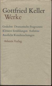 Keller, Gottfried: Werke. 5 Bände. Zürich: Atlantis 1965. 8°. Insgesamt ca. 3426 S., Leinen (Schutzumschlag mit leichten Randläsuren; sonst gut erhalten) Band 1: Gedichte. Dramaturgische Fragmente. Kleinere Erzählungen. Aufsätze. Amtliche Kundmachungen – Band 2: Der grüne Heinrich 1 – Band 3: Der grüne Heinrich 2. Martin Salander – Band 4: Die Leute von Seldwyla. Sieben Legenden – Band 5: Züricher Novellen. Sinngedicht.