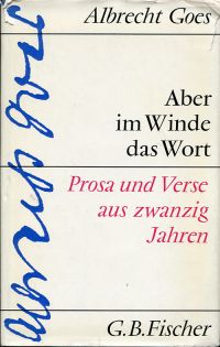 Goes, Albrecht: Aber im Winde das Wort. Prosa und Verse aus 20 Jahren. 11. – 20. Tsd. Frankfurt/Main: G.B. Fischer 1963. 8°. 371 S., Leinen (Autograph auf Vorsatz; Schutzumschlag mit Randläsuren und Einrissen; Papierbedingt leicht gebräunt; sonst gut erhalten)