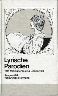 Rotermund, Erwin (Hrsg.): Lyrische Parodien. vom Mittelalter bis zur Gegenwart. Wiesbaden: VMA 1978. 8°. 277 S., Pappband (gut erhalten) CHF 16.00 |