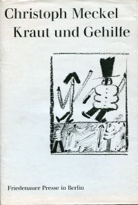Meckel, Christoph: Kraut und Gehilfe. Berlin-Friedenau: Friedenauer Presse 1970. Gr.-8°. 12 S., Illustration, Geheftet mit Schutzumschlag (Seiten teilweise nicht beschnitten; bestossen; Umschlag wenig befleckt und teilweise abgeblasst)