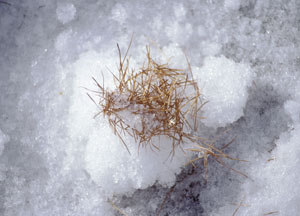 bildreich karten PK 82: lärchennadeln. Querformat. 1999. (Schnee, Schneeball, Lärche, Lärchennadel) Mindestbestellmenge: 15 Karten (auch assortiert).