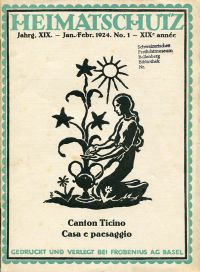 Heimatschutz, Ligue pour la Beauté, Jahrgang 19 (1924), Hefte 1, 3, 4, 5, 6, 7, 8 (7 Hefte) Bern: Benteli 1924 Gr.-8°. ca. 120 S., zahlreiche sw-Abbildungen, Leinen (Umschlag befleckt und abgegriffen; Stempel auf Titelblatt; Papier altersbedingt leicht gebräunt) Aus dem Inhalt: „La Madeleine“ à Genève – Die Bauern-Visitenstube – Pierre-Pertius – Muraltengut und Beckenhof in Zürich – Die Solothurner Tracht – Canton Ticino. Casa e paesaggio – Der Steinerbau ob Dornach.
