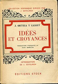 Ortega y Gasset, José: Idées et croyances. Paris: Stock 1945. 8°. XXVII, 206 S., Broschiert (Umschlag abgegriffen und wenig befleckt; Papier altersbedingt gebräunt; sonst altersgemäss gut erhalten) (=Collection hispanique, 1)
