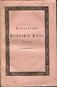 Grund-Gesetze der zinstragenden burgerlichen Ersparniss-Casse in Bern. Bern: Haller 1820. 8°. 42 S., Broschiert (Ecken leicht bestossen; altersgemäss gut erhalten) Text in Fraktur.
