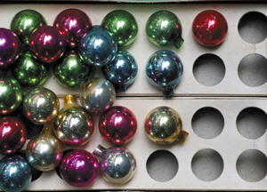 bildreich karten PK 382: weihnachtskugeln. Querformat. (Weihnachtsschmuck, Glas, Kugeln, Weihnachtskugeln, antik) Mindestbestellmenge: 15 Karten (auch assortiert).