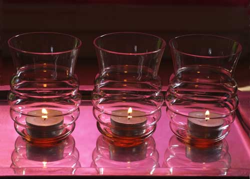 bildreich karten PK 554: teelichte. Querformat. (Teelichter, Gläser. Kerzen, 3, Trio, Party) Mindestbestellmenge: 15 Karten (auch assortiert).