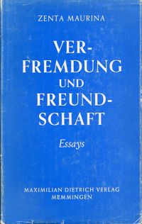 Maurina, Zenta: Verfremdung und Freundschaft. [Essays]. Memmingen/Allgäu: Dietrich 1966. 8°. 133 S., Pappband (Schutzumschlag berieben; gut erhalten)