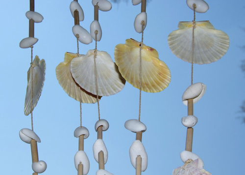 bildreich karten PK 621: muschelspiel. Querformat. (Strand, Meer, Sand, Muscheln, Windspiel, Wind, Klang, Baden, Ferien, Urlaub, Griechenland, Himmel) Mindestbestellmenge: 15 Karten (auch assortiert).