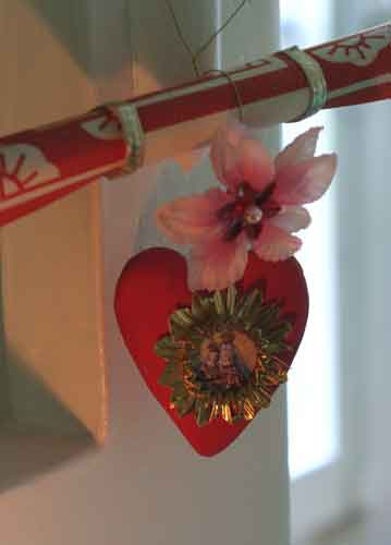 bildreich karten PK 666: herzensbotschaft. Hochformat. (Weihnachtsschmuck, Weihnachtsdekoration, Herz, Botschaft, Jesus, Maria, Madonna, Blume, Papierrolle, Brief) Mindestbestellmenge: 15 Karten (auch assortiert).