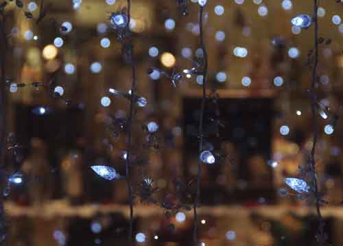 bildreich karten PK 672: glanz. Querformat. (Weihnachtsschmuck, Weihnachtsdekoration, Lichterketten, Schaufenster, Lichter, Spiegelung) Mindestbestellmenge: 15 Karten (auch assortiert).