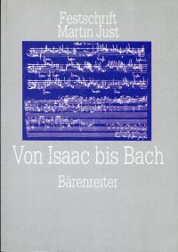 Heidlberger, Frank (Hrsg.): Von Isaac bis Bach. Studien zur älteren deutschen Musikgeschichte. Festschrift Martin Just zum 60. Geburtstag. Kassel/Basel/London/New York, Bärenreiter 1991. 8°. 352 S., Noten Kartoniert (Restexemplare) Die Beiträge beleuchten die deutsche Musikgeschichte von ihren repräsentativen Anfängen um 1500 bis zu ihrem ersten Höhepunkt: J. S. Bach und seiner Zeit.