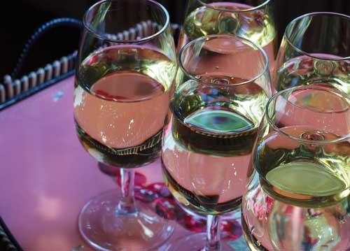 bildreich karten PK 915: sommerfest. Querformat. (Weisswein, Glas, Gläser, Tablett, Garten, Party, Einladung) Mindestbestellmenge: 15 Karten (auch assortiert).