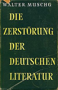 Muschg, Walter: Die Zerstörung der deutschen Literatur. Bern: Francke 1956. 8°. 197 S., Leinen Schutzumschlag lädiert; Schnitt wenig befleckt; Papierbedingt leicht gebräunt; sonst gut erhalten)