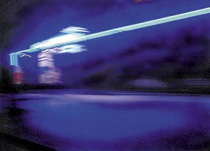 bildreich karten PK 35: nachtflug III. Querformat. 2003. (Paris, Party, Neon, Nacht) Mindestbestellmenge: 15 Karten (auch assortiert).