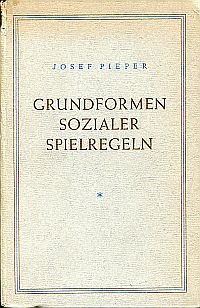 Pieper, Josef: Grundformen sozialer Spielregeln. Frankfurt/Main: Knecht, 1948. 116 S., Pappband (Besitzervermerk auf Vorsatz; Ex Libris auf Innendeckel; Kapital oben wenig eingerissen und leicht bestossen; Papierbedingt gebräunt)