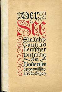 Bodensee – Scholz, Wilhelm von: Der See. Ein Jahrtausend deutscher Dichtung vom Bodensee. Konstanz a. B.: Reuß & Jtta 1915. 372 S., Halbpergament (Besitzervermerk auf Vortitel; Ex Libris auf Innendeckel; Einband mit leichten Gebrauchsspuren; altersgemäss gut erhalten)