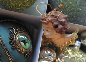 bildreich karten PK 285: wunderfitzig. Querformat. 2007. (Glas, Kugeln, Kristall, Weihnachtsschmuck, Engel) Mindestbestellmenge: 15 Karten (auch assortiert).