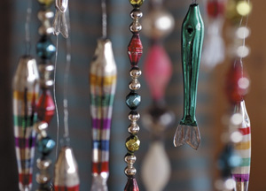 bildreich karten PK 383: weihnachtsketten. Querformat. (Weihnachtsschmuck, Glas, Weihnachtskugeln, antik, Ketten) Mindestbestellmenge: 15 Karten (auch assortiert).