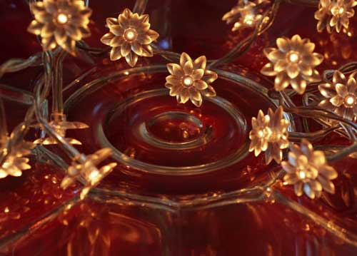 bildreich karten PK 562: lichtbluemchen II. Querformat. (Lichterkette, Blümchen, Glas) Mindestbestellmenge: 15 Karten (auch assortiert).