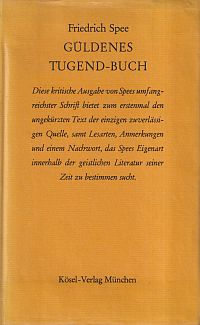 Spee, Friedrich von: Güldenes Tugend-Buch. München: Kösel 1968. 8°. 725 S. Leinen (Besitzervermerk auf Vorsatz; Ex Libris auf Innendeckel; gut erhalten) (=Sämtliche Schriften, : historisch-kritische Ausgabe; Hrsg. von Emmy Rosenfeld ; Bd. 2)