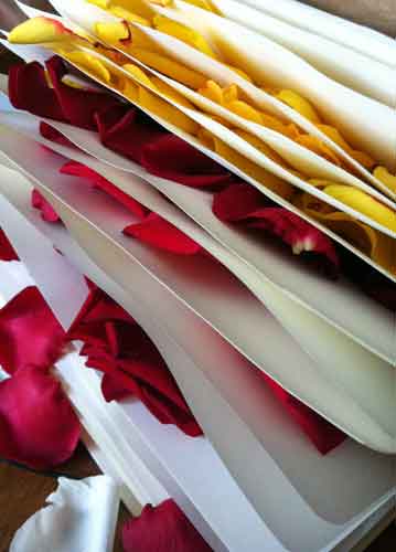 bildreich karten PK 660: rosentagebuch. Hochformat. (Tagebuch, Rosenblätter, Seiten, Papier, Erinnerung, Pressen) Mindestbestellmenge: 15 Karten (auch assortiert).