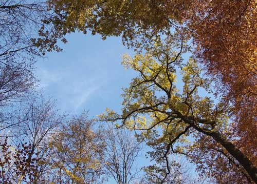 bildreich karten PK 736: pantheon. Querformat. (Wald, Baum, Herbstfärbung, Baumkronen, Himmel) Mindestbestellmenge: 15 Karten (auch assortiert).