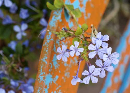 bildreich karten PK 825: beblümt. Querformat. (Stuhl, Farbe, Gartenstuhl, Garten, Zweig, Blüten) Mindestbestellmenge: 15 Karten (auch assortiert).