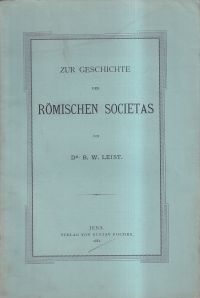 Leist, Burkard Wilhelm: Zur Geschichte der Römischen Societas. Jena: Fischer 1881. Gr.-8°. 46 S., broschiert (Seiten nicht beschnitten; Einband mit leichten Gebrauchsspuren; altersgemäss gut erhalten)