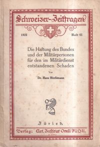 Hürlimann, Hans: Die Haftung des Bundes und der Militärpersonen für den im Militärdienst entstandenen Schaden. Zürich: Orell Füssli 1925. 8°. 119 S. Broschiert (teilweise leicht stockfleckig; altersgemäss gut erhalten) (=Schweizer Zeitfragen, H. 61)