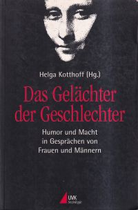 Kotthoff, Helga (Hrsg.): Das Gelächter der Geschlechter. Humor und Macht in Gesprächen von Frauen und Männern 2. erweiterte u. überabreitete Auflage. Konstanz: UVK, Univ.-Verl. Konstanz 1996. 8°. 288 S., kartoniert (Einband mit leichten Gebrauchsspuren; gut erhalten) Der Stellenwert des Humors, der Scherze und des Lachens für das Zustandekommen und die Aufrechterhaltung ungleicher Verhältnisse von Frau und Mann wird ergründet.