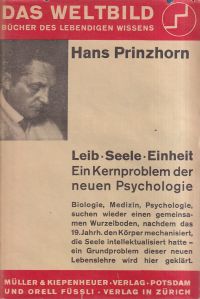 Prinzhorn, Hans: Leib-Seele-Einheit. Ein Kernproblem der neuen Psychologie. Potsdam: Müller & Kiepenheuer; Zürich: Orell Füssli 1927. Kl.-8°. 201 S., broschiert (Schutzumschlag mit leichten Randläsuren; leicht angestaubt; altersgemäss gut erhalten) (=Das Weltbild ; Bd. 3)