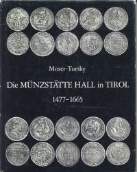 Moser, Heinz/Tursky, Heinz: Die Münzstätte Hall in Tirol, 1477-1665. Innsbruck: Rudolf Erhard 1977. 4°. 372 S., zahlreiche zum Teil farbige Abbildungen, Leinen (Schutzumschlag mit Randläsuren; gut erhalten)