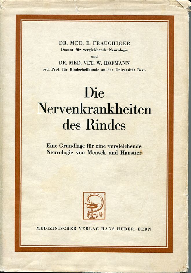 Frauchiger, Ernst/Hofmann, Walter: Die Nervenkrankheiten des Rindes. Eine Grundlage für eine vergleichende Neurologie von Mensch und Haustier. Bern, Huber, 1941. Gr.-8°. 361 S., zahlreiche sw-Abbildungen, Register, Leinen (Schutzumschlag mit Randläsuren und Gebrauchsspuren; sonst gut erhalten)