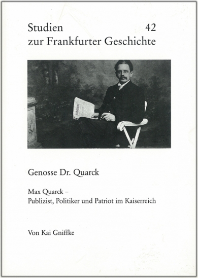 Gniffke, Kai: Genosse Dr. Quarck. Max Quarck – Publizist, Politiker und Patriot im Kaiserreich. Frankfurt/Main: Kramer 1999. Lex.-8°. 328 S., sw-Abbildungen, gebunden (Schutzumschlag wenig bestossen; sonst sehr gut erhalten) (=Studien zur Frankfurter Geschichte ; 42) Die Biographie Max Quarcks zeichnet den Weg eines „Überläufers“ im Kaiserreich nach, der eine gesicherte bürgerliche Existenz aufgibt und sich dem Kampf für soziale Demokratie verschreibt. In Frankfurt am Main findet Quarck das ideale Umfeld für seinen beharrlichen Einsatz für den reformistischen Pragmatismus der Sozialdemokratie. Dabei geht er keinem Konflikt aus dem Weg, führt leidenschaftliche Auseinandersetzungen mit Engels, Bebel, Max Weber u. v. a.