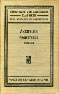 Aischylos: Prometheus. Nebst den Bruchstücken des Prometheus lyomenos für den Schulgebrauch erklärt von N. Wecklein 3. Auflage. Leipzig: B. G. Teubner 1893. 8°. IV, 154 S., Leinen (Besitzervermerk auf Vorsatz; Einband teilweise abgeblasst; leicht stockfleckig; wenig Bleistiftanstreichungen; Papier altersbedingt leicht gebräunt) (=Griechische u. lateinische Klassiker. Schulausgaben mit Anmerkungen)
